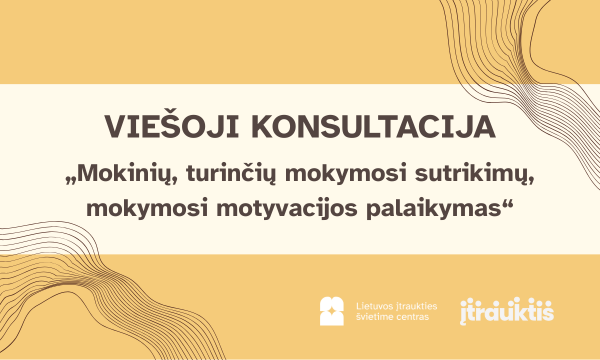 Kviečiame į viešąją konsultaciją apie mokinių, turinčių mokymosi sutrikimų, mokymosi motyvacijos palaikymą